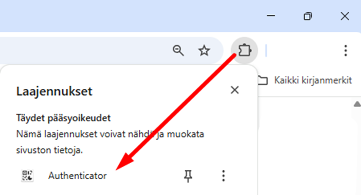 1. Avaa vaiheessa 1 asentamasi Authenticator selaimesi laajennuksista: