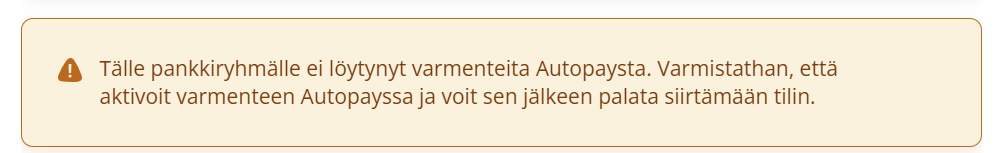 Yksittäisen pankkitilin aktivoimista Autopayssa paranneltu