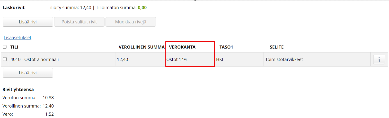 Korjaus: Parannettu käytettävyyttä Ostolaskujen kierrätyksen laskurivin Verokanta-otsikon kohdalla.