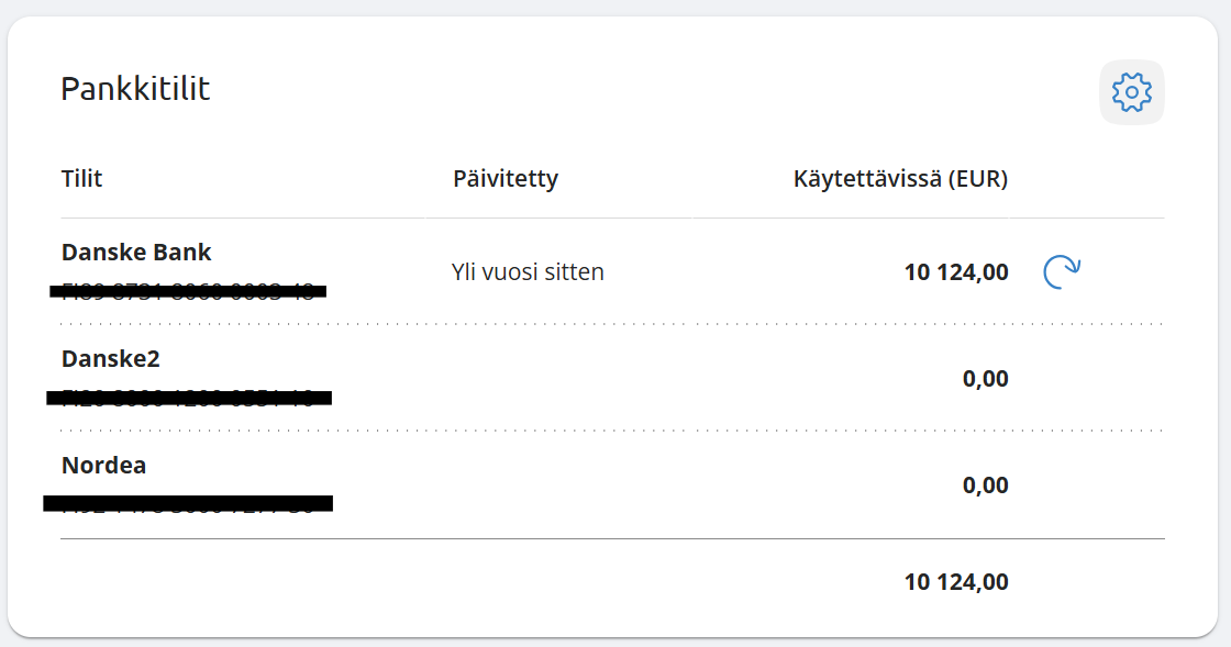 Fivaldin etusivun Talousnäkymän pankkitilit- widgetiin on lisätty mahdollisuus reaaliaikasaldon päivittämiseen Autopaystä.