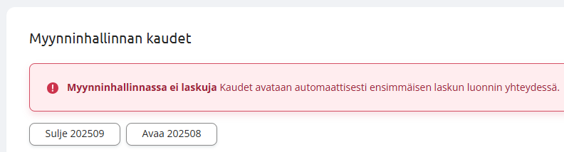 Korjaus: Myynninhallinnan kaudet -asetuksessa kauden sulkeminen tai avaaminen tapauksessa, jossa yhtään laskua ei ole vielä tehty, antaa nyt selkeämmän viestin: