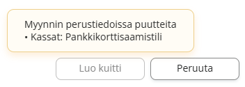 Nyt kuittia luodessa antaa tiedon puutteesta: