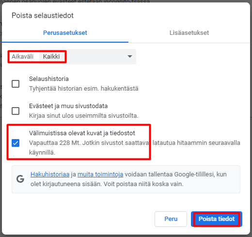 Jos kirjautumisessa ilmenee edelleen jatko-ongelmia, suosittelemme tyhjentämään käyttämäsi internet-selaimen asetuksista välimuistitiedot. Välimuistin tyhjennyksen jälkeen sulje selain, avaa se uudelleen ja kirjaudu Fivaldiin normaalisti.