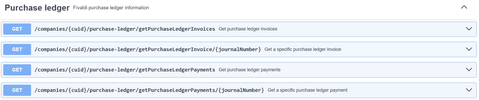 Purchase ledger external APIs