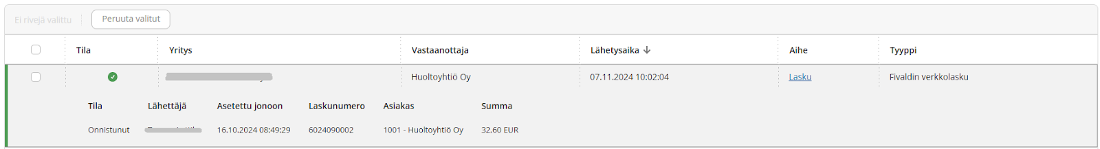 - Myynninhallinnasta tehtyjen laskujen tunnistetietoja on lisätty lähetysjonoon (laskunumero, asiakas, summa)