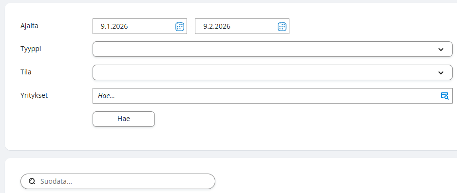 - Lisätty Suodata-ominaisuus, jolla lähetysjonon tietoja voidaan suodattaa, esim. laskunumeron perusteella