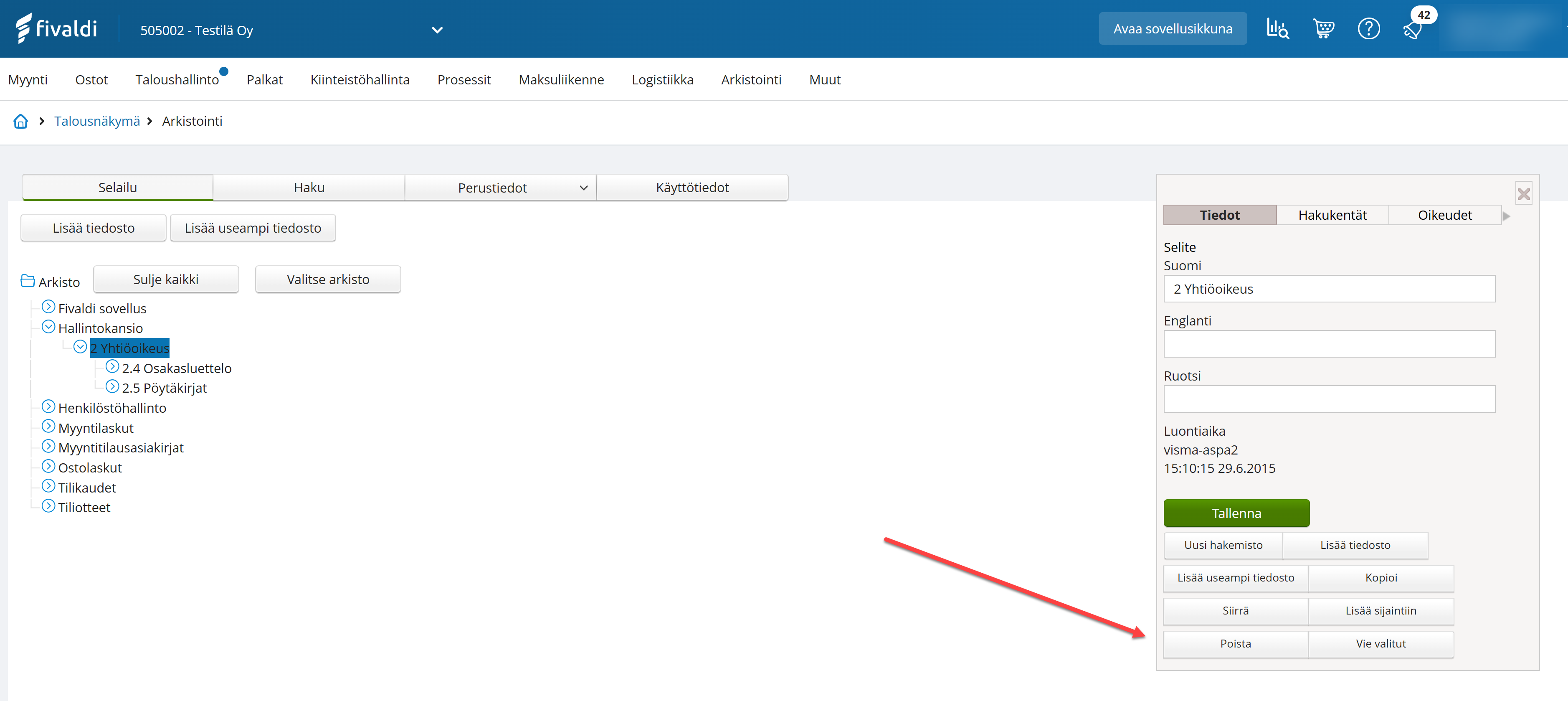 Itse Arkisto-hakemistoa ei voi poistaa.