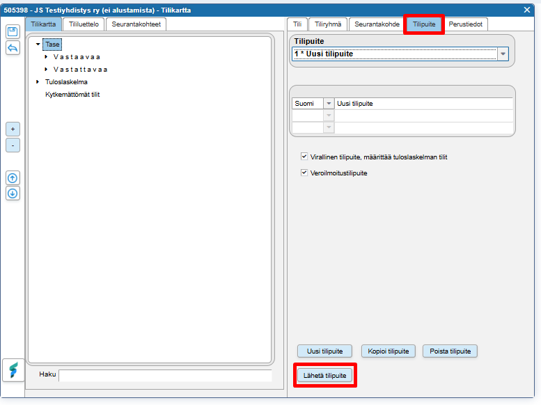 4. Avaa yläoikealta Tilipuite-välilehti ja napsauta ruudun alareunassa näkyvää Lähetä tilipuite -painiketta.
