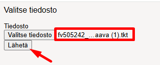 6. Onnistuneen valinnan jälkeen tiedoston nimi näkyy Valitse tiedosto -painikkeen perässä. Napsauta Lähetä-painiketta.