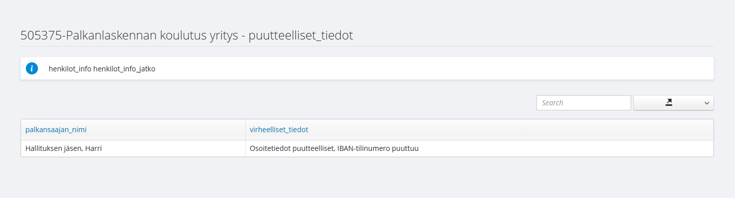 HYVÄ TIETÄÄ: Listausnäkymä aukeaa selaimeen vain, mikäli puutteellisia tietoja löytyi.