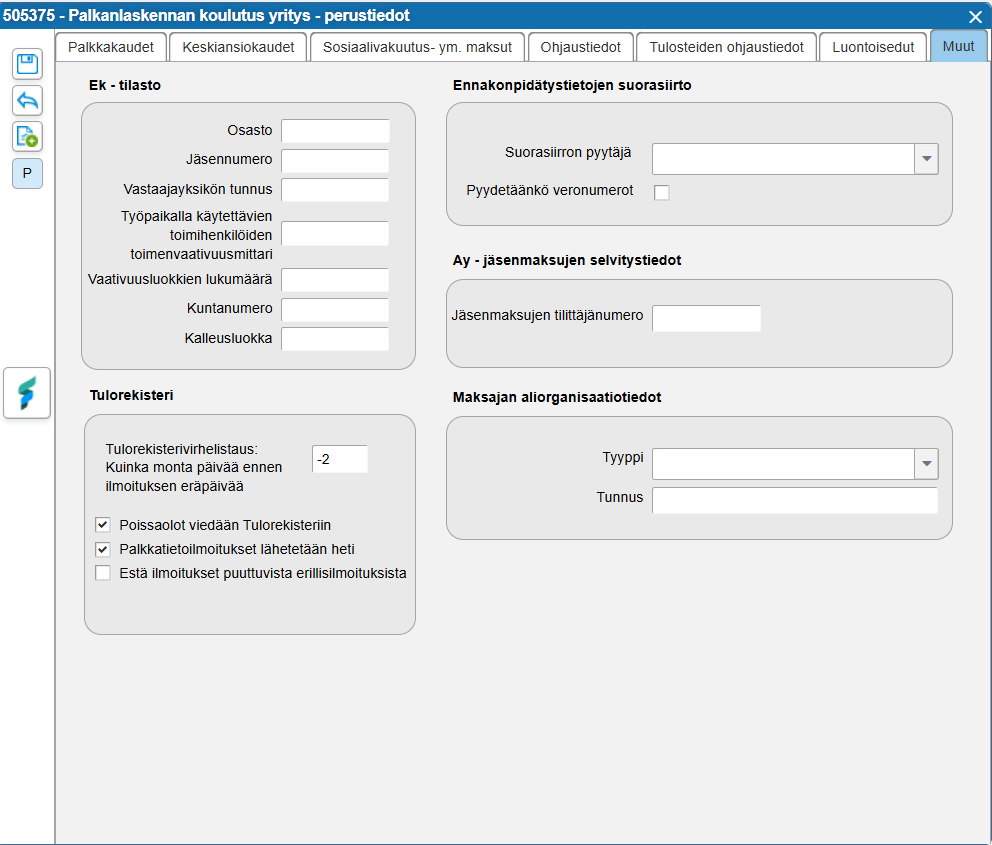 Voit myös estää yrityksen puuttuvien erillisilmoitusten nousemisen tähän listaan ja kriittisen ilmoituksen listaukseen valitsemalla Palkaanlaskennan perustiedoissa valinnan Estä ilmoitukset puuttuvista erillisilmoituksista.