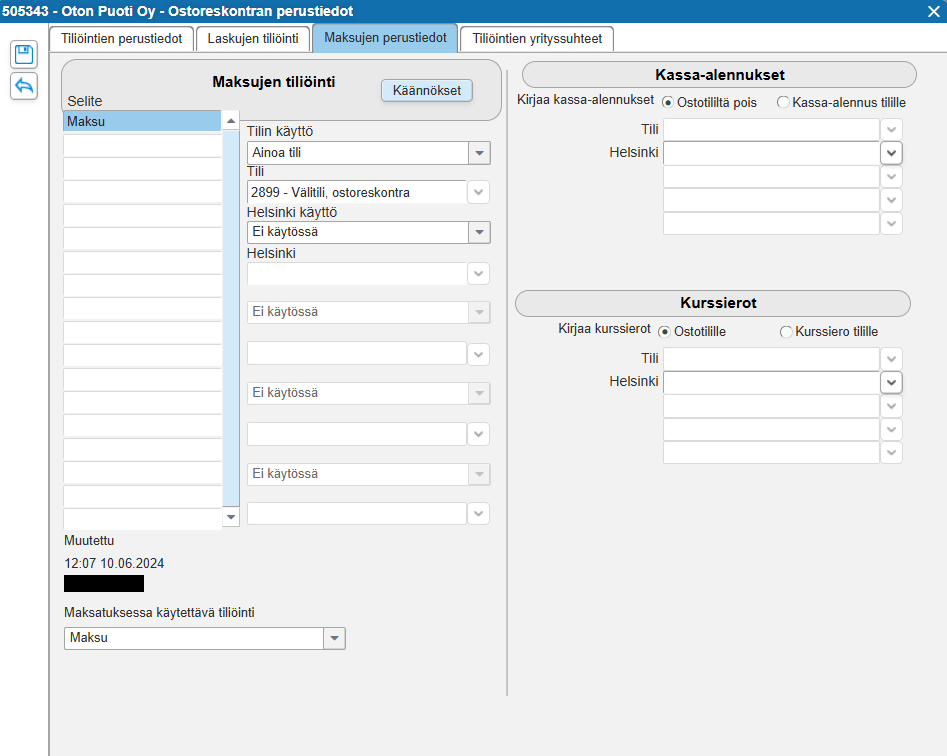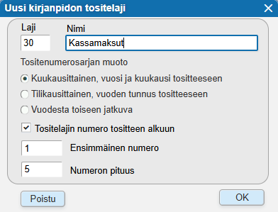 Kassamaksut (=kassamaksujen tositelaji, otetaan käyttöön ostoreskontrassa):