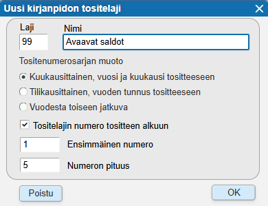 Avaavat saldot (tositelaji, jolla syötetään avaavat saldot kirjanpidossa):