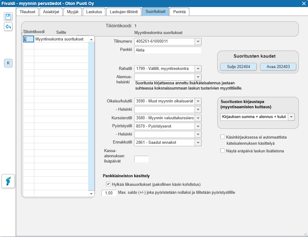 Löydät lisää tietoa Fivaldin Kirjanpidon perustiedoista ohjeesta Kirjanpidon perustiedot.