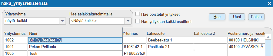 Löydät lisää tietoa Fivaldin Yritysrekisteristä ohjeista Asiakasrekisteri ja Yritysrekisteri - Sovellusikkuna.