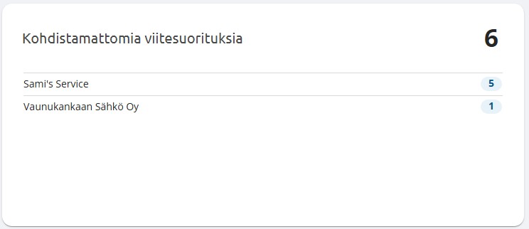Kohdistamattomat viitesuoritukset -widgetissä näet suosikkiyritystesi avoimet kohdistamattomat myynnin viitesuoritukset Saatavienhallinta-sovelluksessa.