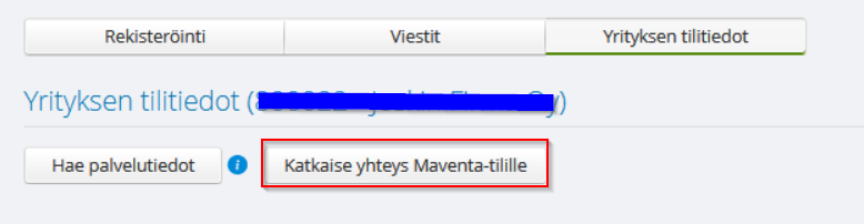 Huom! Katkaise yhteys Maventa-tilille -painiketta ei tule käyttää, jos Maventa-tili halutaan irtisanoa kokonaan. Siirry ohjeeseen Maventa-tilin irtisanominen.