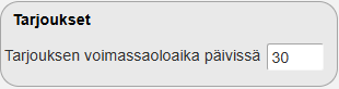 Oletuksena lasketaan myynnin perustiedoissa, Tilaukset-välilehdellä annetun voimassaolopäivän mukainen päiväys jonka voi myös muuttaa. Päivämäärä jää ruudulle tarjouksen päättymispäiväksi sekä näkyy PDF:llä tarjouksen voimassaolopäivänä.