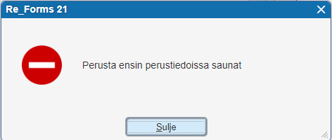 Kun Saunavuorot-sovelluksen avaa ensimmäisen kerran, tulee ilmoitus saunan perustamisesta perustiedoissa. Sulje ikkuna napsauttamalla Sulje-painiketta.