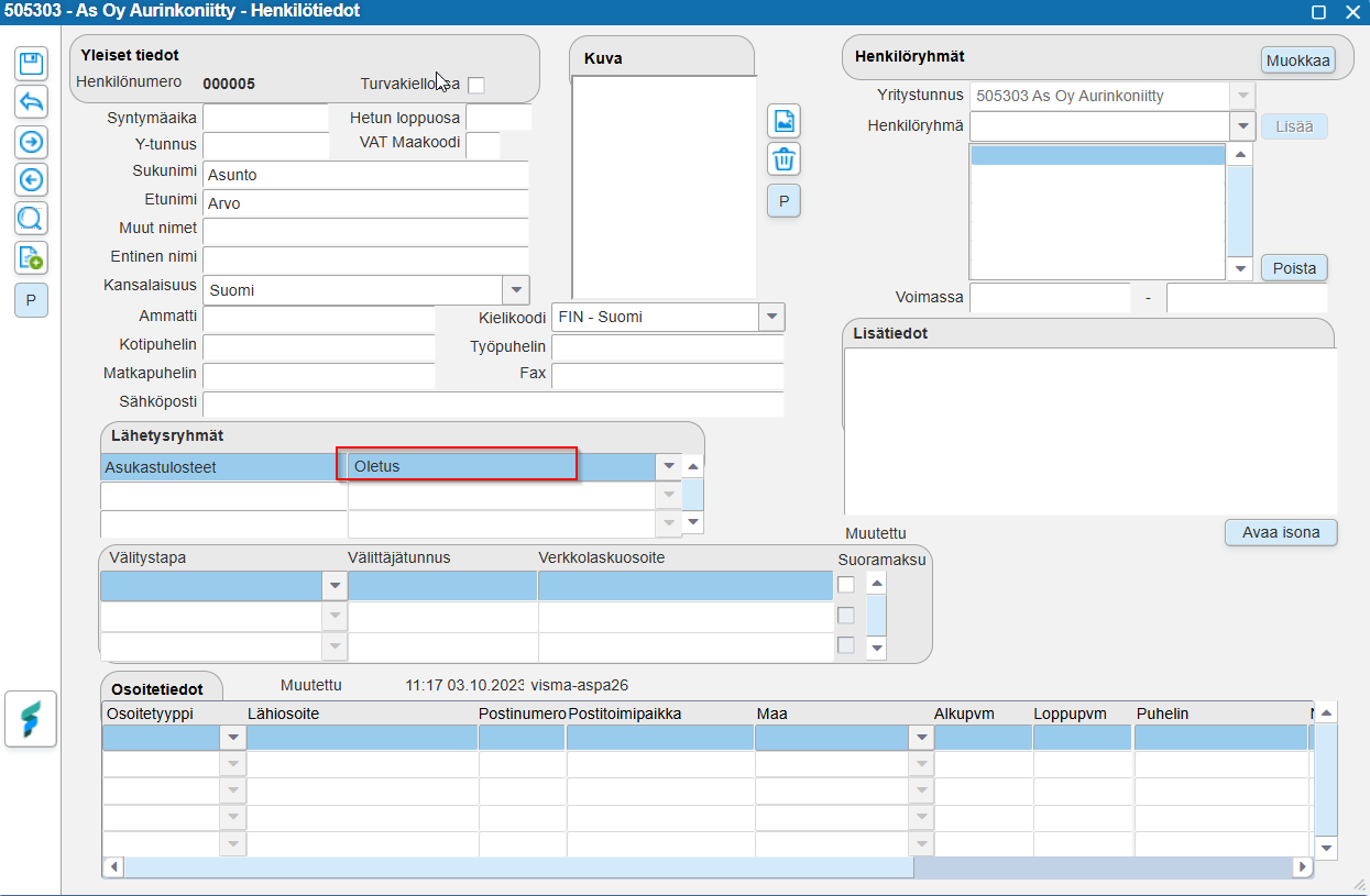 Jos perintäajo tai tavoitteiden ajo antaa virheilmoituksen "Virheellinen arvo kentälle LAHETYSTAPA_LISTA", tarkista, että kaikilla henkilöillä on valittuna Lähetysryhmille välitystapa.