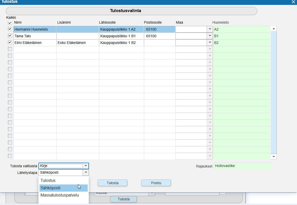 Avainsanat: asiakastiedotteet, Kirjeiden tulostaminen, kirjepohjat, sähköiset kirjeet