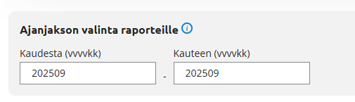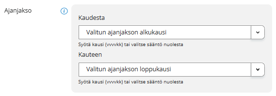 Syötä haluamasi aloitus ajanjakso Kaudesta-kenttään muodossa VVVVKK (esim. 202510).